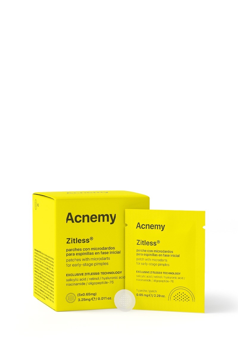 Zitless to fantastyczny plaster na pryszcze, wypryski, nawet te pod skórą (tak, te, które bolą). To plaster wypełniony 24 mikrozakładkami wypełnionymi unikalną mieszanką składników takich jak retinol, kwas salicylowy, kwas hialuronowy, niacynamid i oligopeptyd-76 (najlepsze składniki do walki z tego typu trądzikiem).
