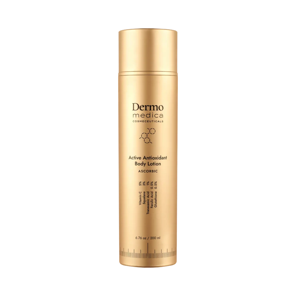 Dermomedica Active Antioxidant Body Lotion to luksusowy lotion do ciała stworzony z myślą o intensywnej pielęgnacji przeciwstarzeniowej. Produkt zawiera witaminę C, kwas ferulowy i glutation, które wspomagają regenerację skóry, ujędrniają ją, rozjaśniają przebarwienia i chronią przed szkodliwym działaniem wolnych rodników. Dowiedz się więcej o pielęgnacji skóry z witaminą C, aby uzyskać maksymalne efekty.