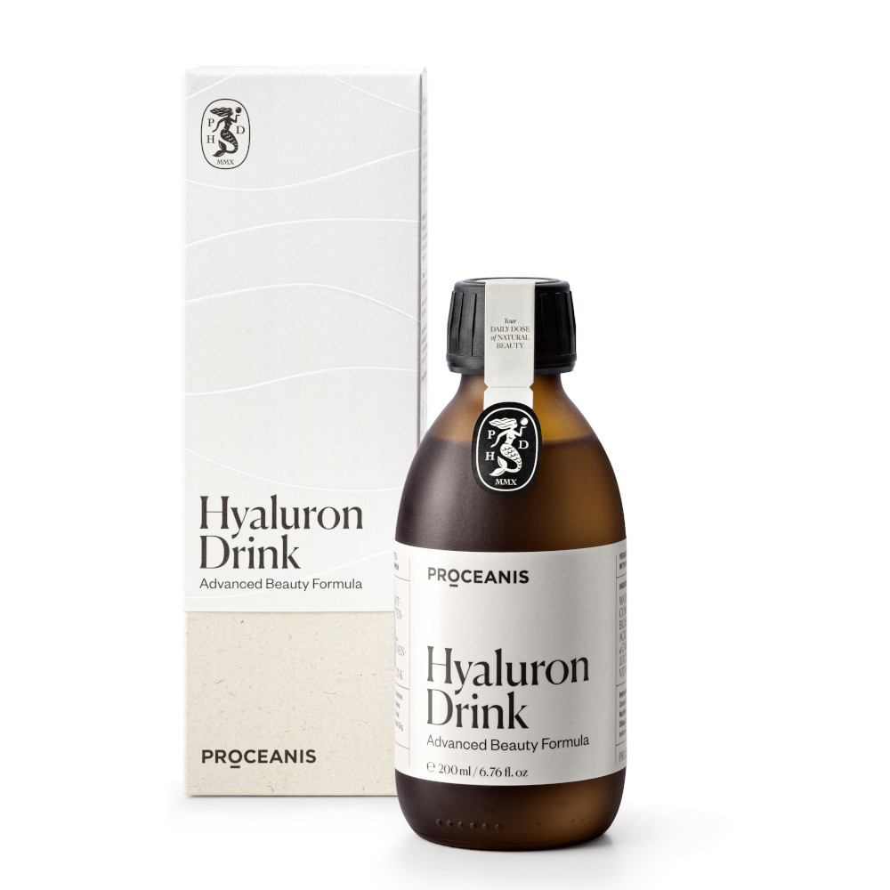 PROCEANIS® Hyaluron Drink bazuje na zasadzie: „człowiek jest tym, co je”. Jego wyjątkowość polega na działaniu tam, gdzie tradycyjne kosmetyki nie są w stanie dotrzeć. Regularne stosowanie wspierać będzie Twoje naturalne piękno i dobre samopoczucie od wewnątrz – tam, gdzie się one rodzą. Pij PROCEANIS® Hyaluron Drink i obserwuj, jak Twoja skóra staje się coraz lepiej nawilżona i bardziej elastyczna, jak wygładzają się drobne linie na Twojej twarzy, jak wypełnia się struktura skóry, a paznokcie oraz włosy wzmacniają się, lśnią i wyglądają pięknie.