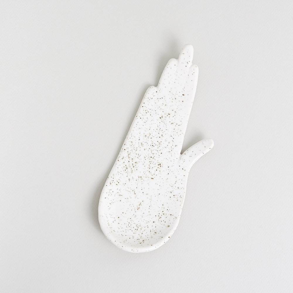 Ceramiczna podstawka pod kadzidło. Dłoń jest znanym w wielu kulturach, starożytnym symbolem uzdrawiania i ochrony. Stanowi idealnie dopełnienie rytuału okadzania, czyli oczyszczania przestrzeni.